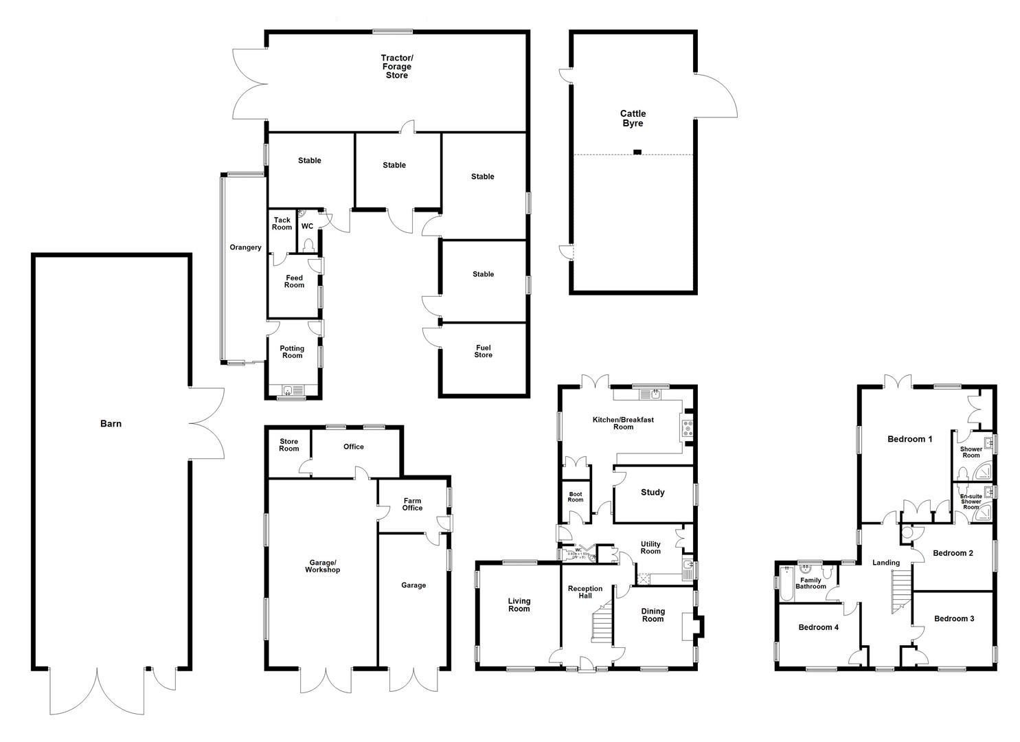- Stables - Tractor Store - Triple Garage - Office - Out-buildings