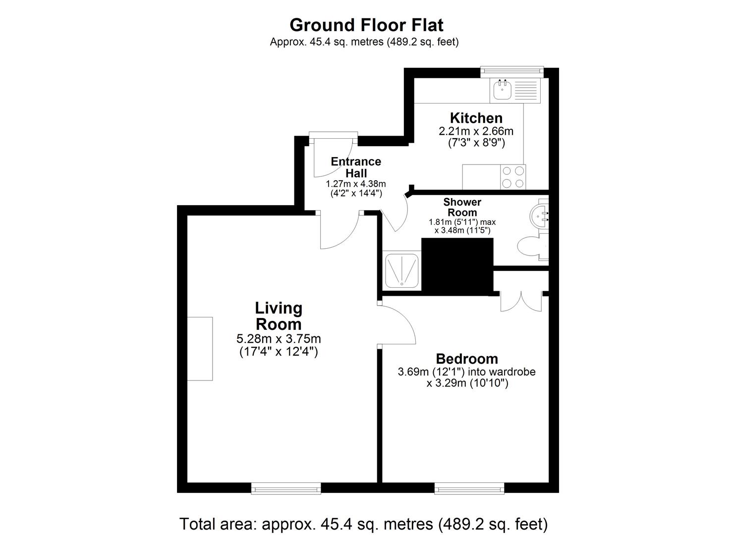 The accommodation is conveniently arranged on a single level and includes an entrance hall, a fully equipped kitchen, a spacious living room, a comfortable double bedroom, and a family shower room.