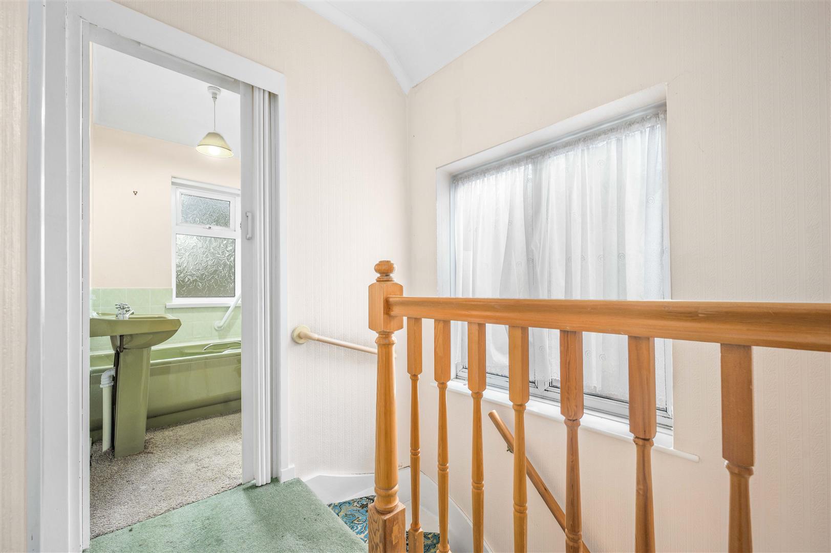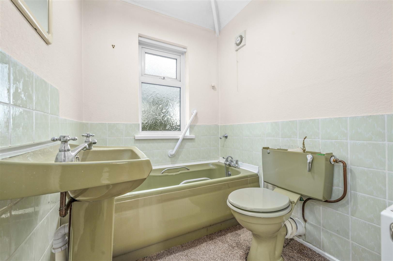 With obscure glazed window to the rear, 3-piece suite comprising; panelled bath with shower attached and hot-and-cold taps over, low level WC, pedestal wash hand basin with hot-and-cold taps over, extractor fan, tiling to splashback areas, and radiator.