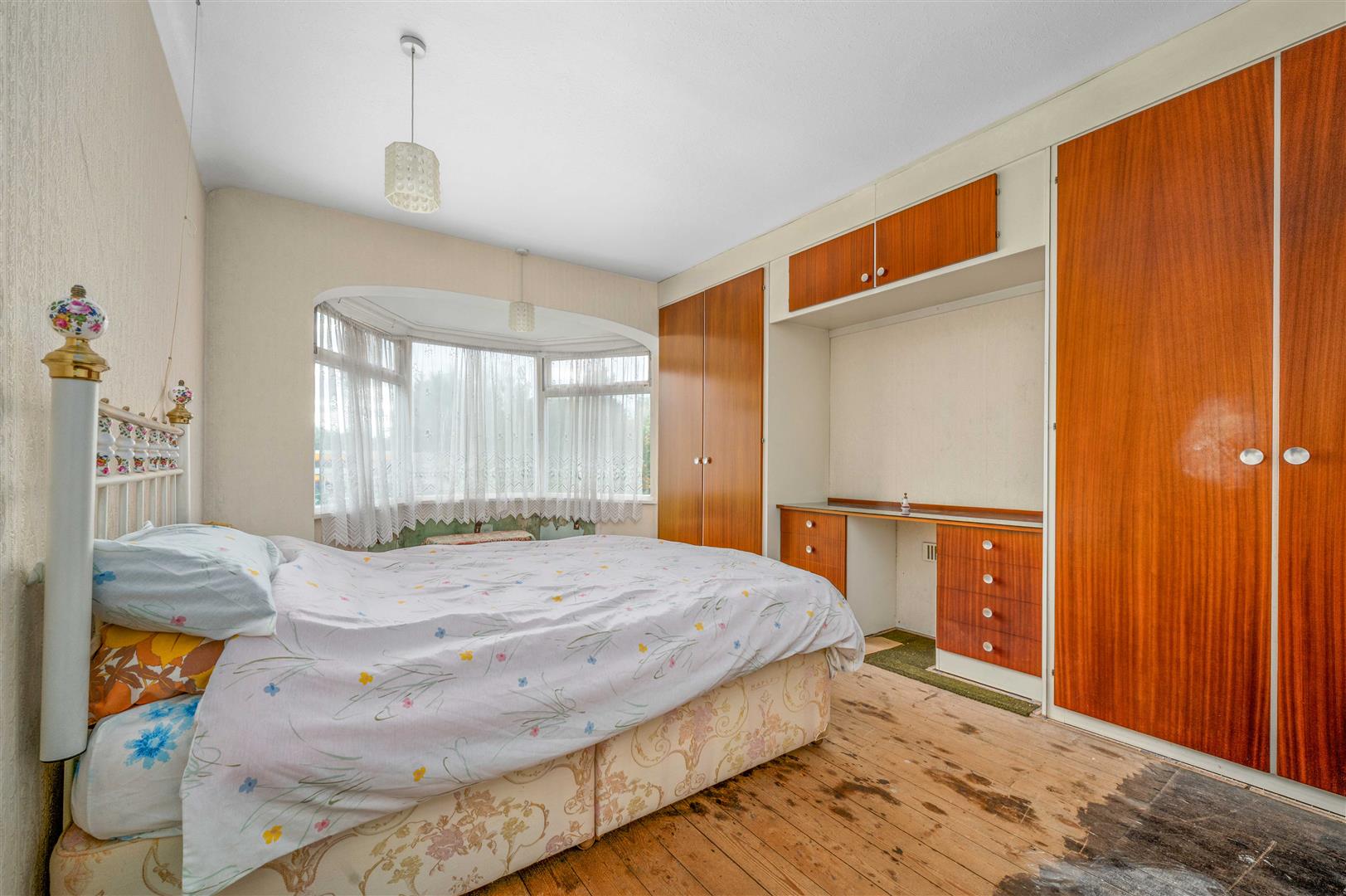 With feature double glazed walk-in bay window to the front, a range of built-in wardrobes, matching dressing table unit, and radiator.