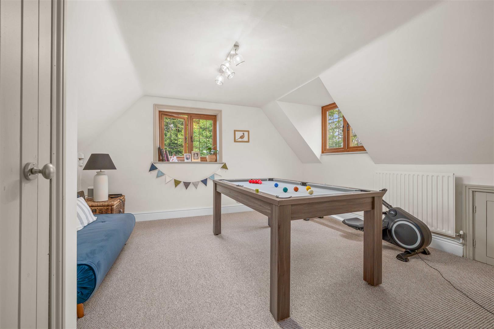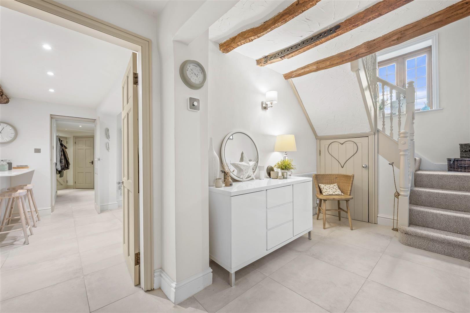 The accommodation is well arranged and comprises an inviting entrance hall, an elegant sitting room centred around a striking inglenook fireplace with log-burning stove, a separate study, and a well-appointed kitchen/dining room with breakfast bar and additional log-burning stove. Further accommodation includes a utility room, guest cloakroom, five bedrooms and three bathrooms.